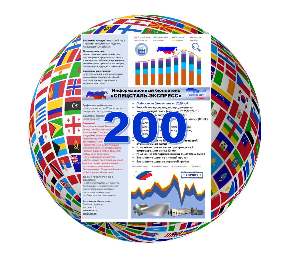 09.11.2025 Импорт Экспорт Производство Производство нержавеющей стали в России продолжает снижаться Выплавка нержавеющей стали Согласно экспертной оценке Ассоциации «Спецсталь», в период с января по сентябрь 2025 года, по сравнению с АППГ, объем выплавки нержавеющей стали в России снизи...